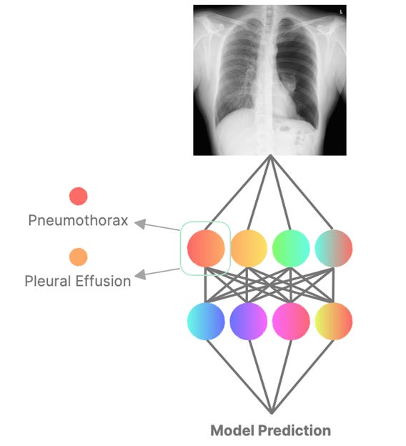 The result is polysemanticity, single neurons responding to multiple unrelated concepts. A neuron in a chest X-ray model might activate for both pneumothorax and pleural effusion or encode both anatomical features and patient demographics. This makes individual neurons nearly impossible to interpret directly.